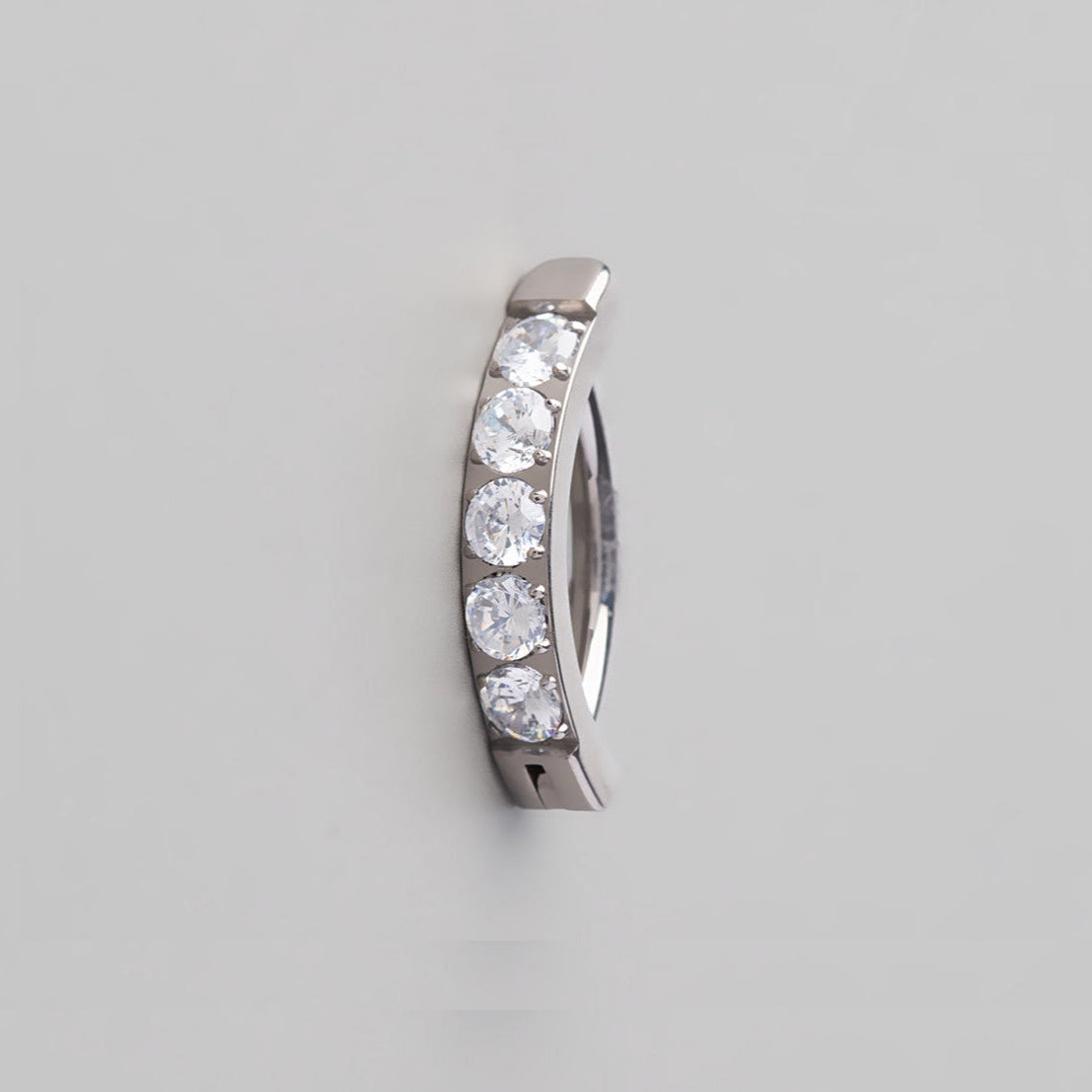 Our Hinged Belly Bar with 5 Set Line is made from ASTM F136 Implant Grade Titanium, a style that expresses premium body jewellery. This is perfect for a naval piercing, a very simplistic design. This belly piercing is perfect for a subtle but effective look for your belly bar.